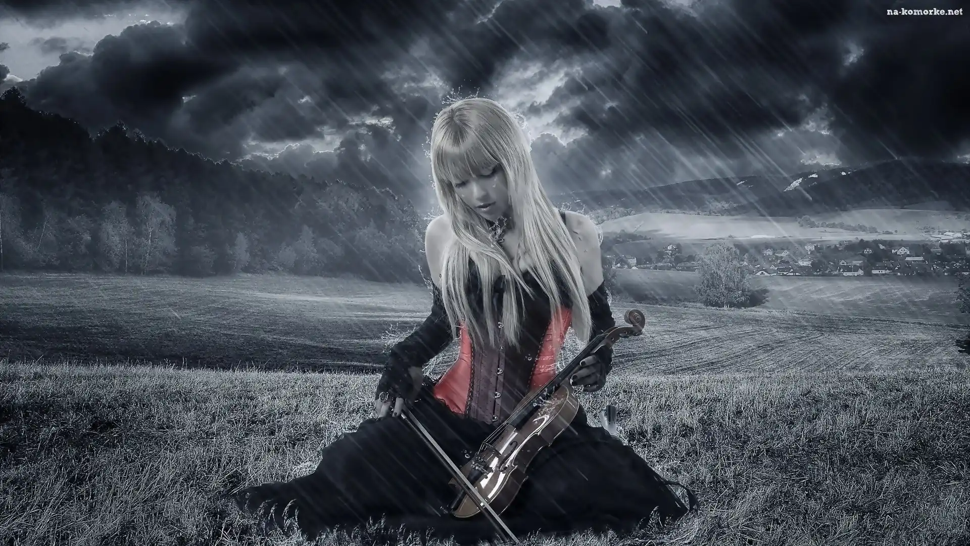 Kobieta, Pole, Skrzypce, Deszcz na Komórkę