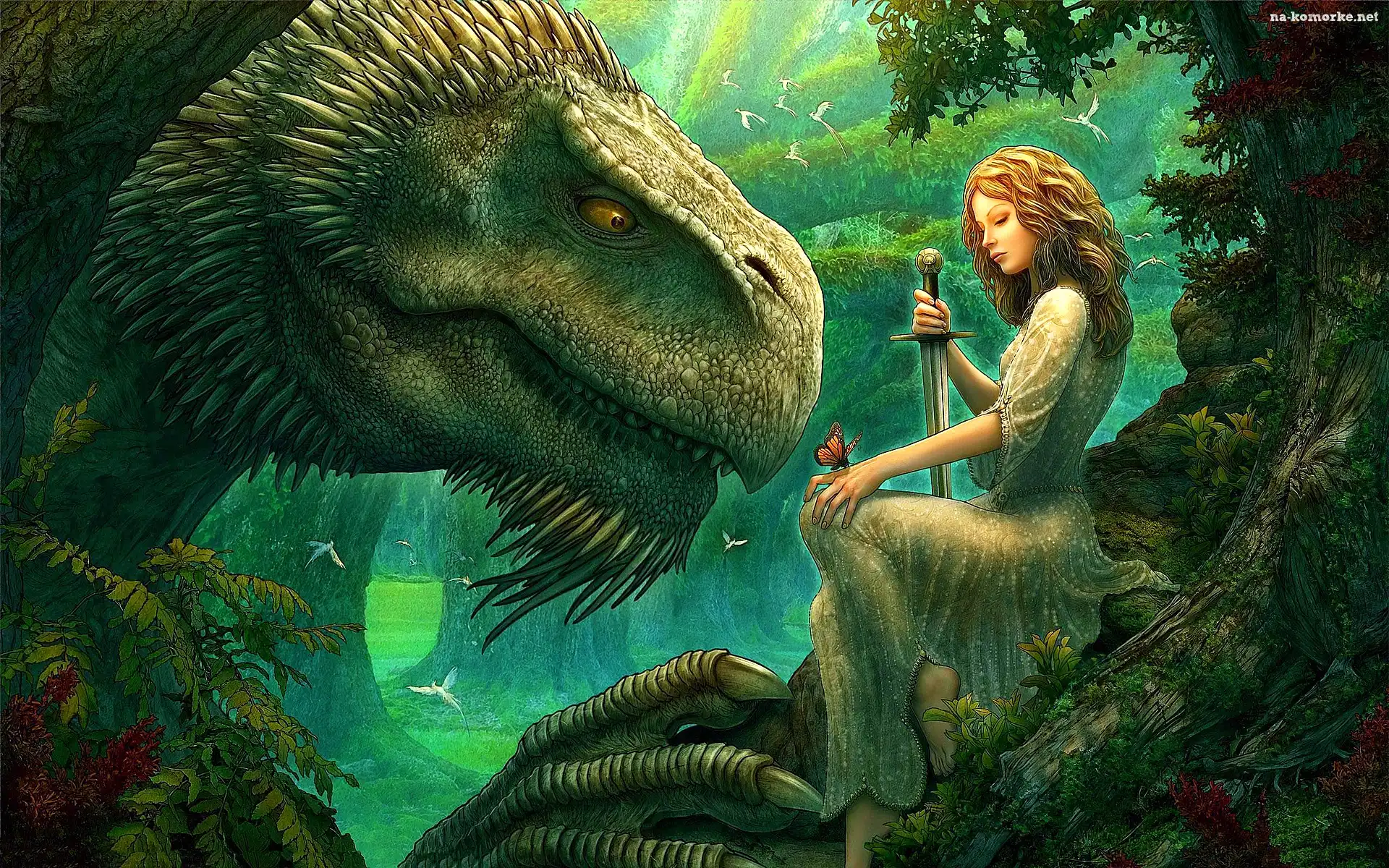Zamek, Niebo, Chmury Kobieta, Ogniste, Włosy Biały, Koń, Woda Kobieta, Góry, Most Kobieta, Śnieg, Tygrys Kobieta, Kosmos, Broń Czerwony, Feniks Kobieta, Drzewo, Suknia, Kot Kobieta, Ptak, Zieleń Ogień, Lód Kobieta, Smok, Wodny Ziemia, Fantasy, Grafika Anioły, Kosa, Miecze Kobiety, Ogień, Woda