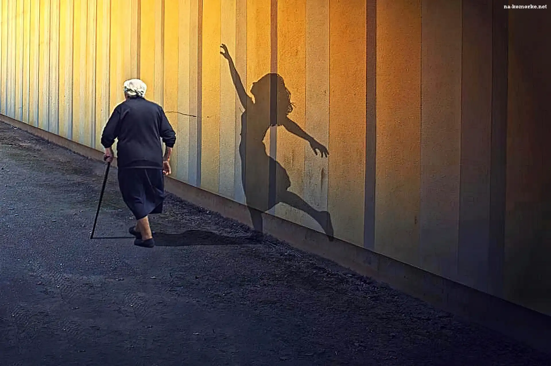 Stara, Kobieta, Cień na Komórkę