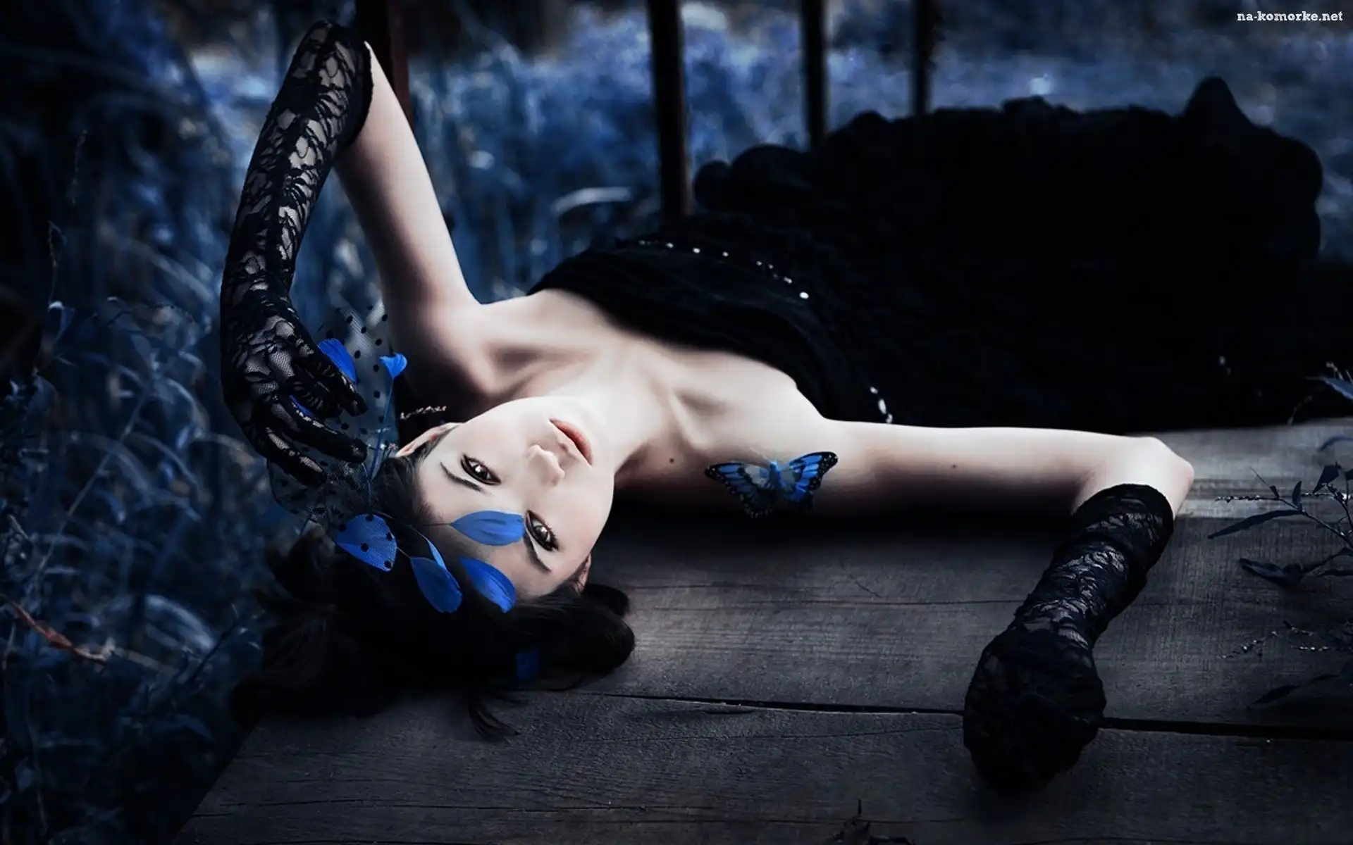 Kobieta, Rękawiczki, Sukienka, Motyle na Komórkę
