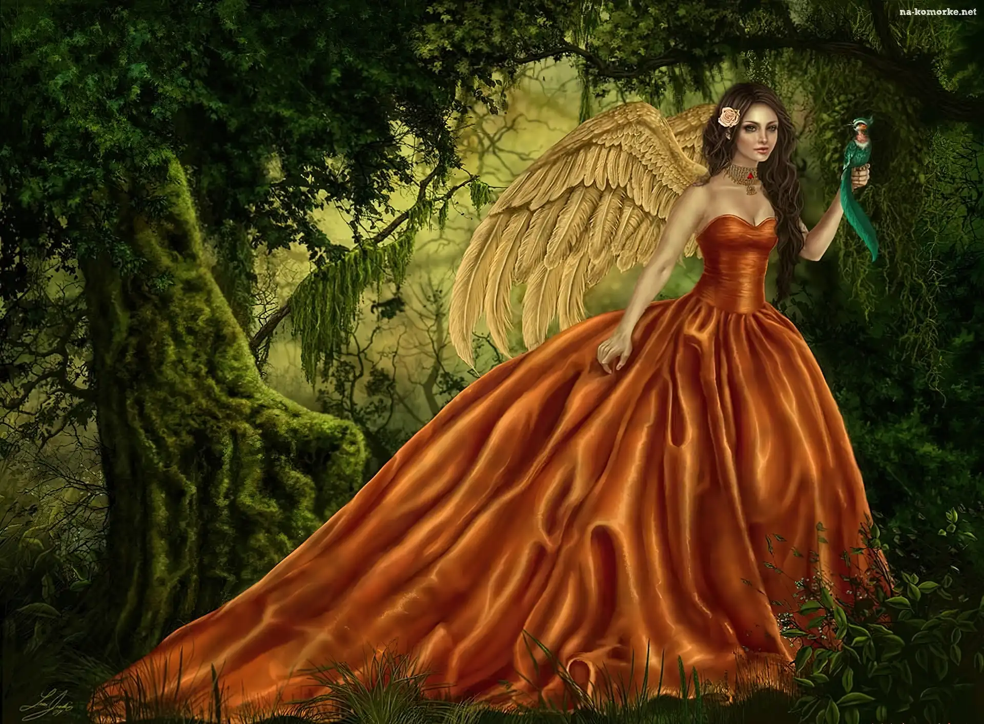 Kobieta, Ptak, Suknia, Skrzydła na Komórkę