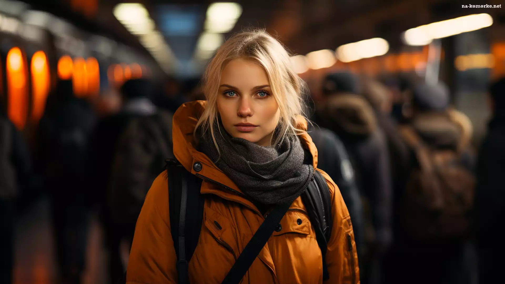 Kobieta, Kurtka, Szalik na Komórkę