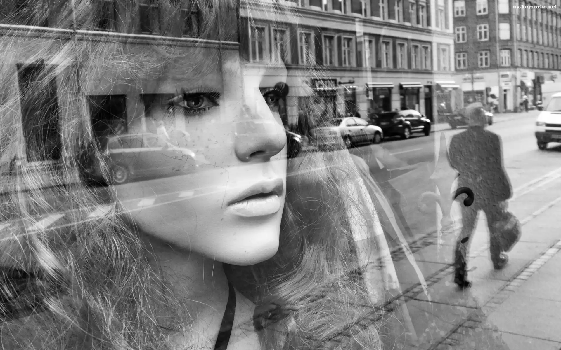 Kobieta, Czarno-Białe, Twarz, Miasto na Komórkę