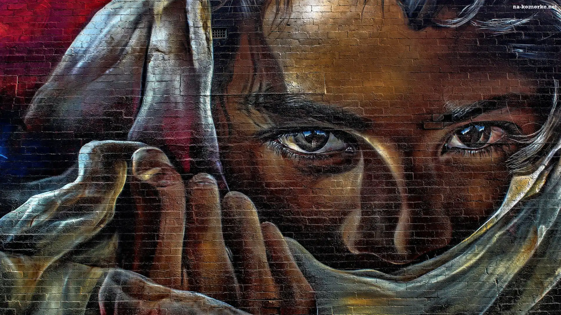 Kobieta, Graffiti, Zasłonięta, Twarz, Oczy na Komórkę
