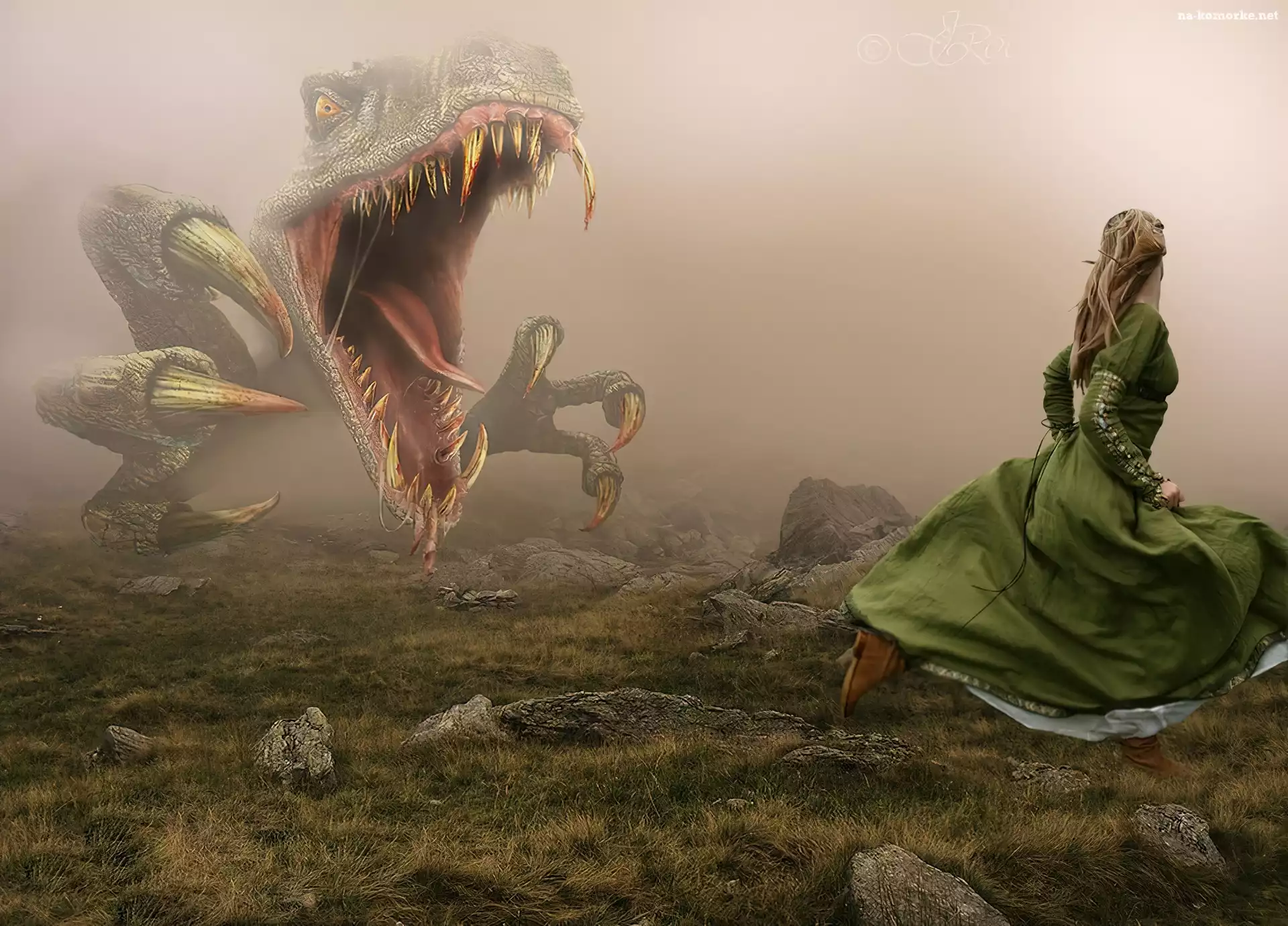 Uciekająca, Kobieta, Dinozaur na Komórkę