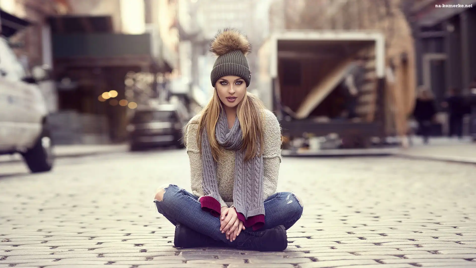Kobieta, Szalik, Ulica, Czapka na Komórkę