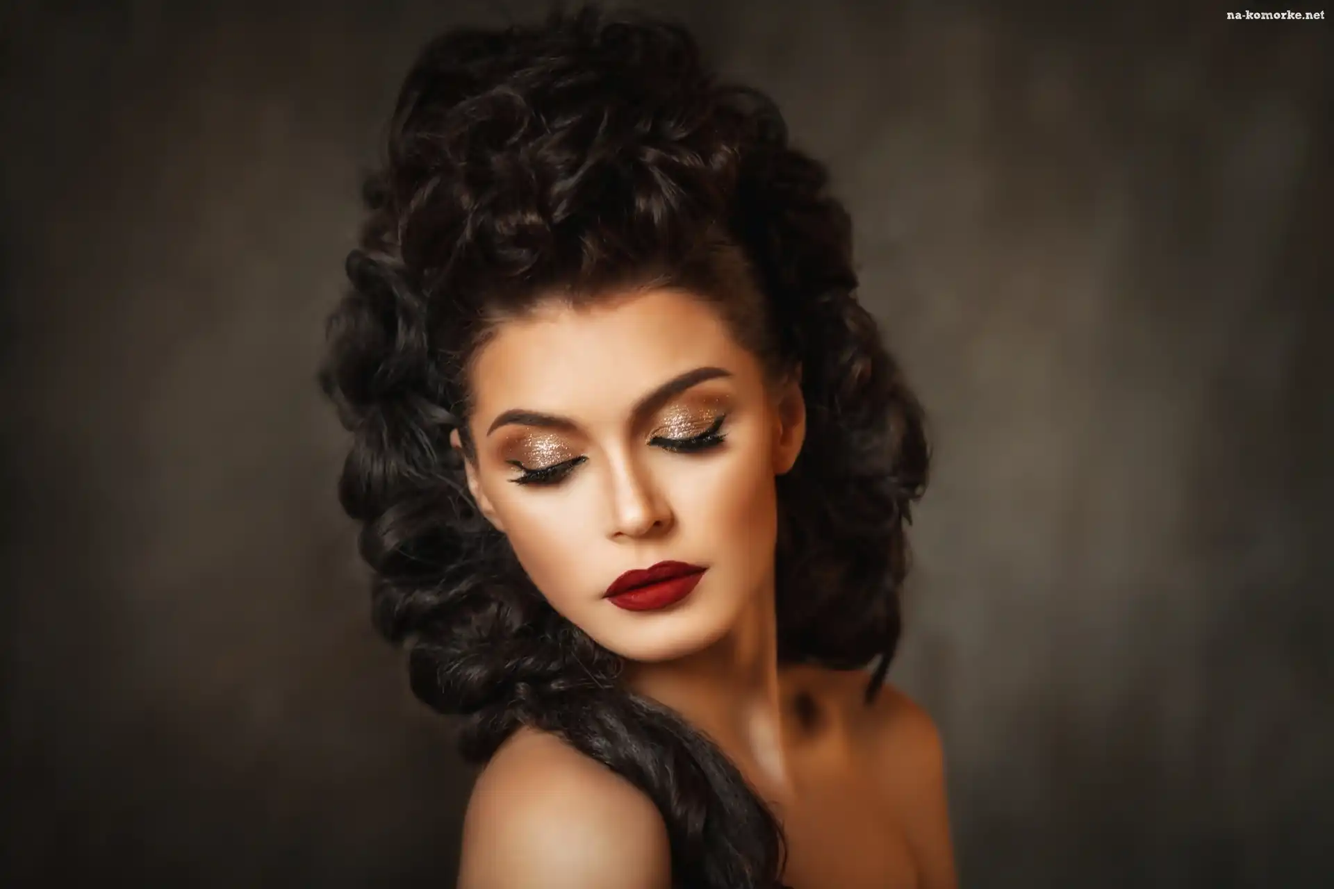 Kobieta, Makijaż, Upięte, Włosy na Komórkę