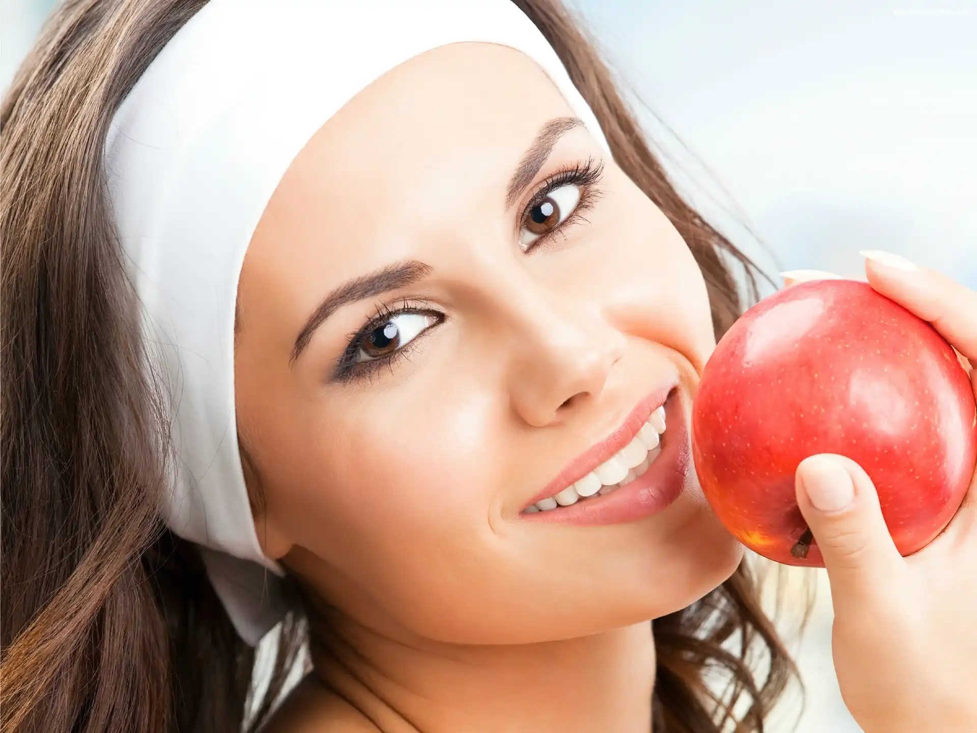 Uśmiechnięta, Kobieta, Jabłko na Komórkę