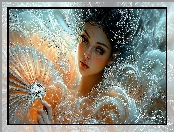 Wachlarz, Pióra, Grafika, Kobieta na Komórkę