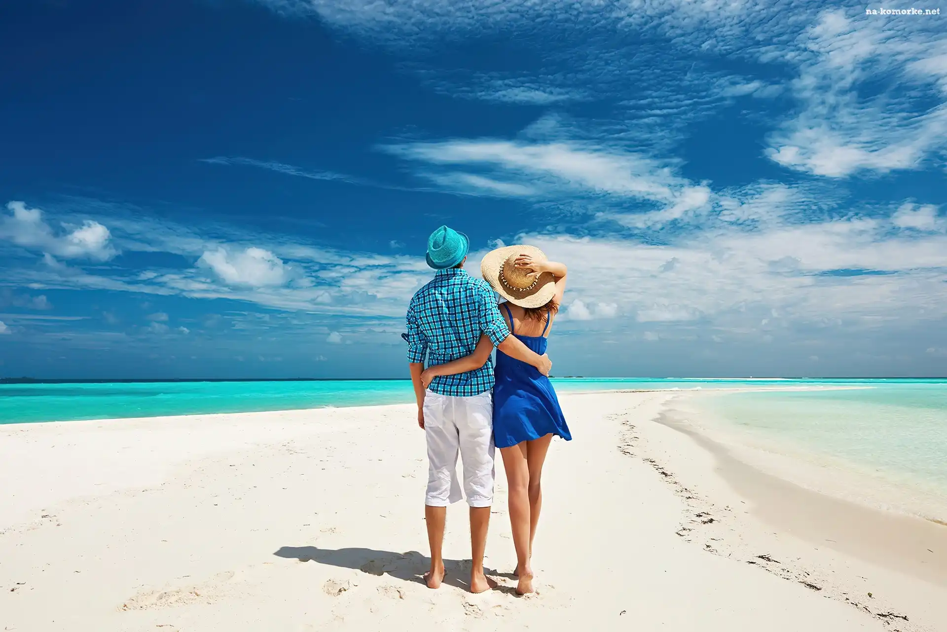 Kobieta, Plaża, Morze, Mężczyzna, Wakacje, Kapelusz na Komórkę
