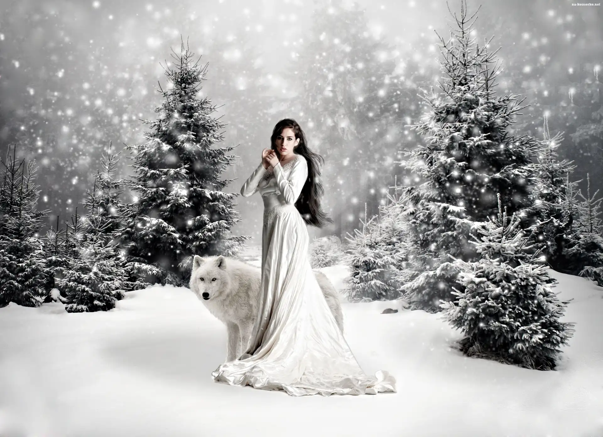 Kobieta, Zima, Wilk, Choinki na Komórkę