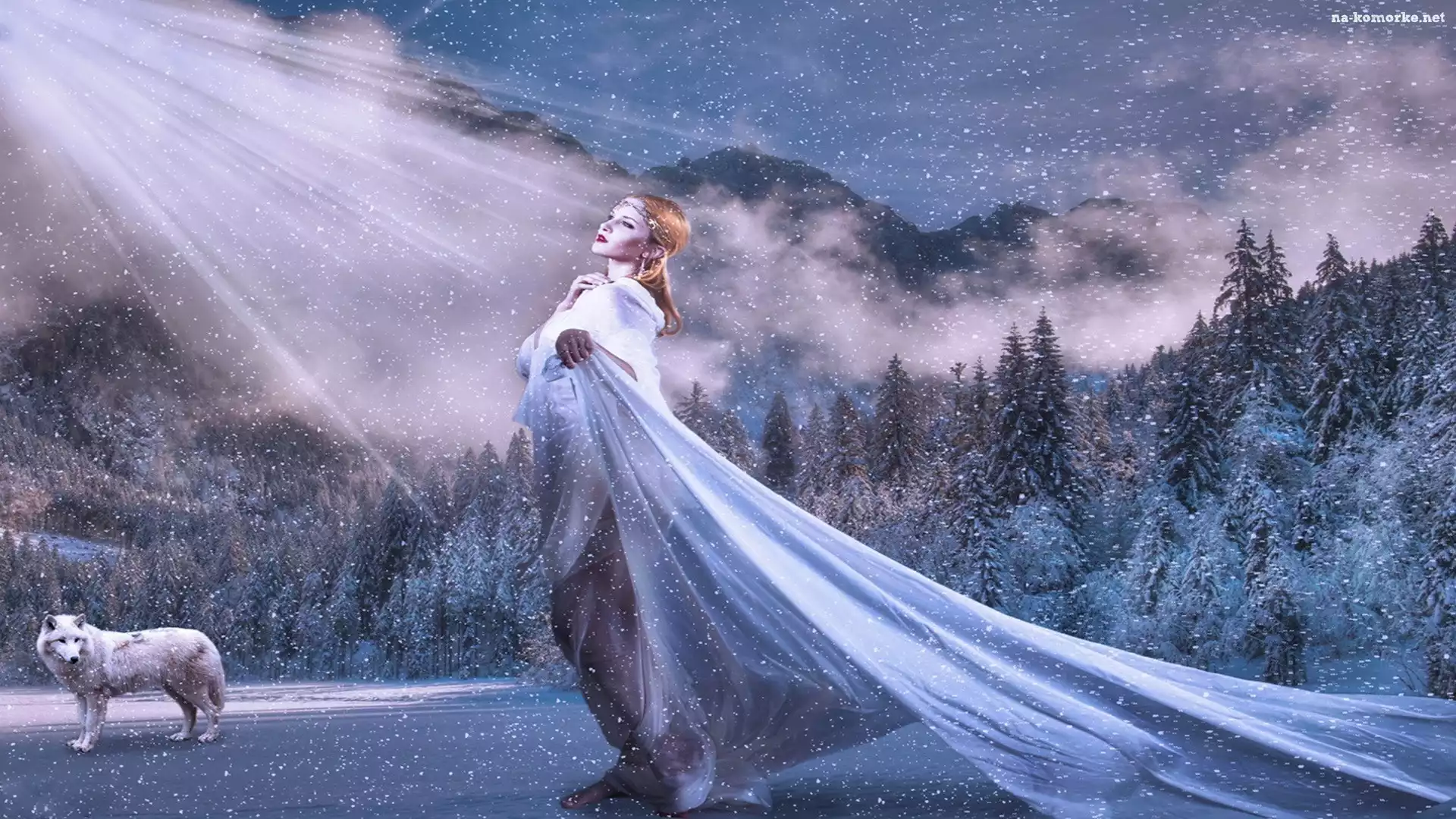 Kobieta, Zima, Wilk, Las na Komórkę