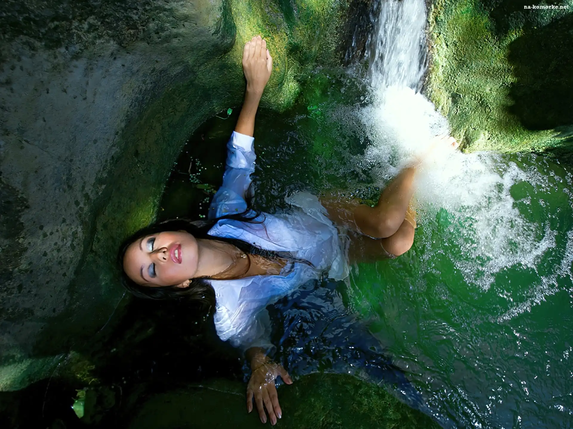 Kobieta, Koszulka, Woda, Mokra na Komórkę