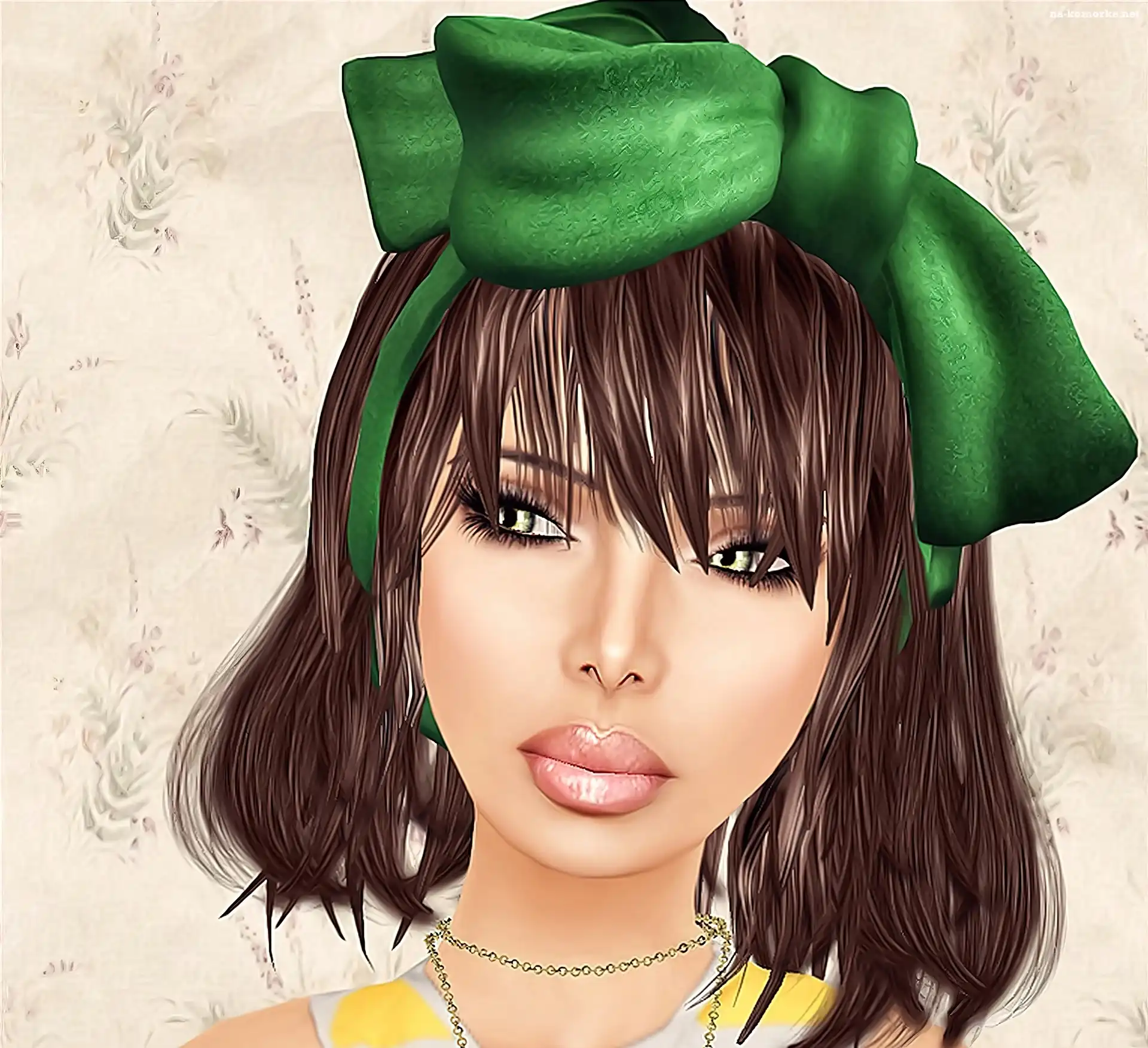 Kobieta, Grafika, Zielona, Kokarda na Komórkę