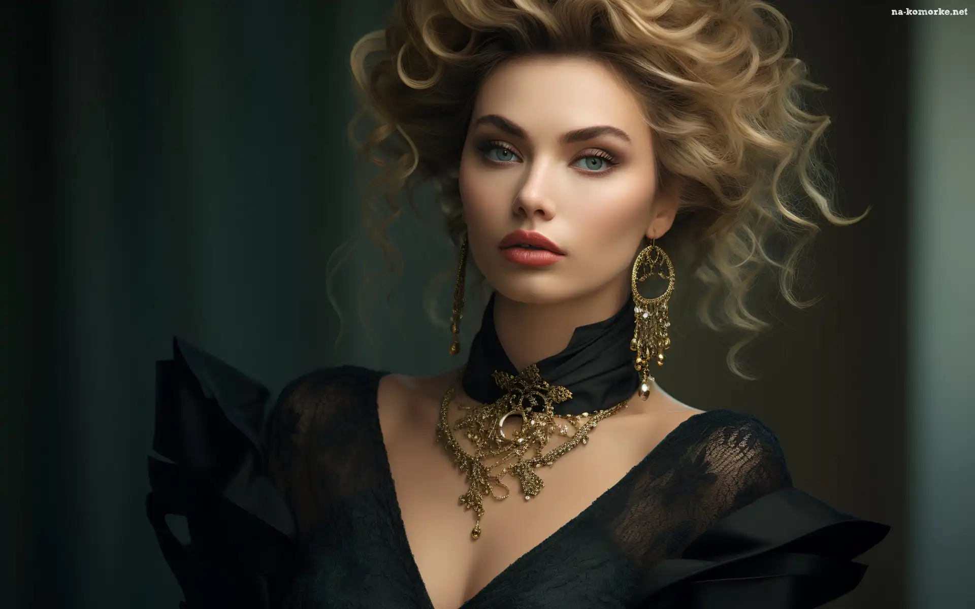 Złota, Biżuteria, Piękna, Kobieta na Komórkę