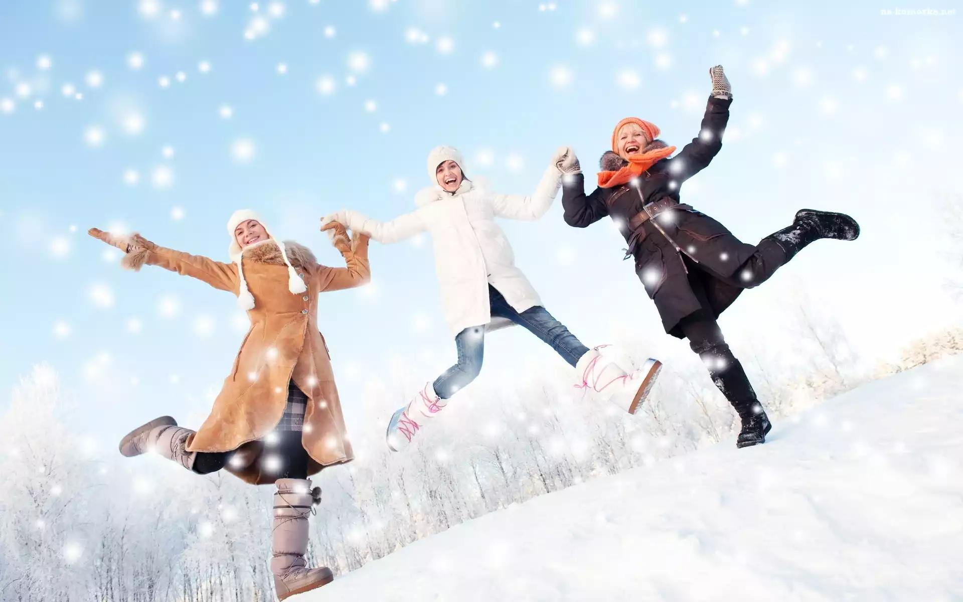 Śnieg, Trzy, Radosne, Kobiety, Zabawa na Komórkę