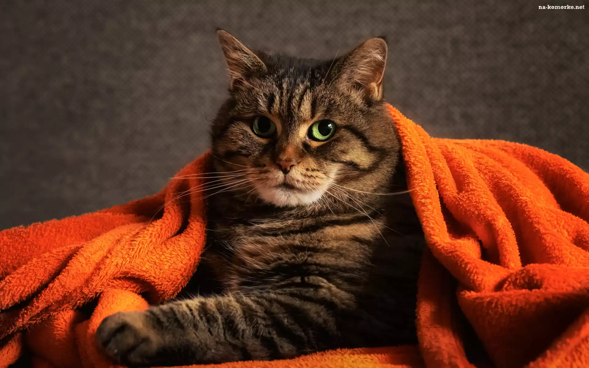 Pomarańczowy, Bury, Oczy, Koc, Zielone, Kot na Komórkę