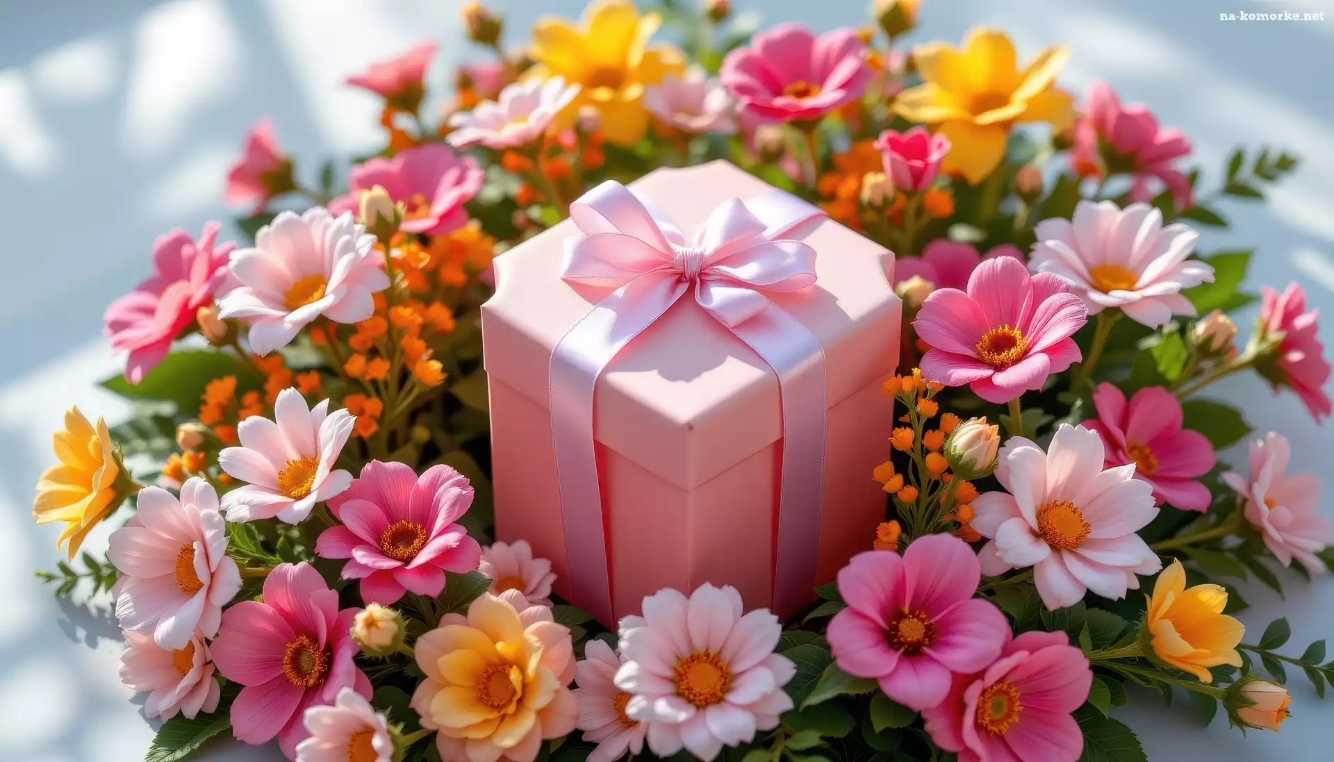 Różowe, Kokarda, Kwiaty, Pudełko, Prezent na Komórkę