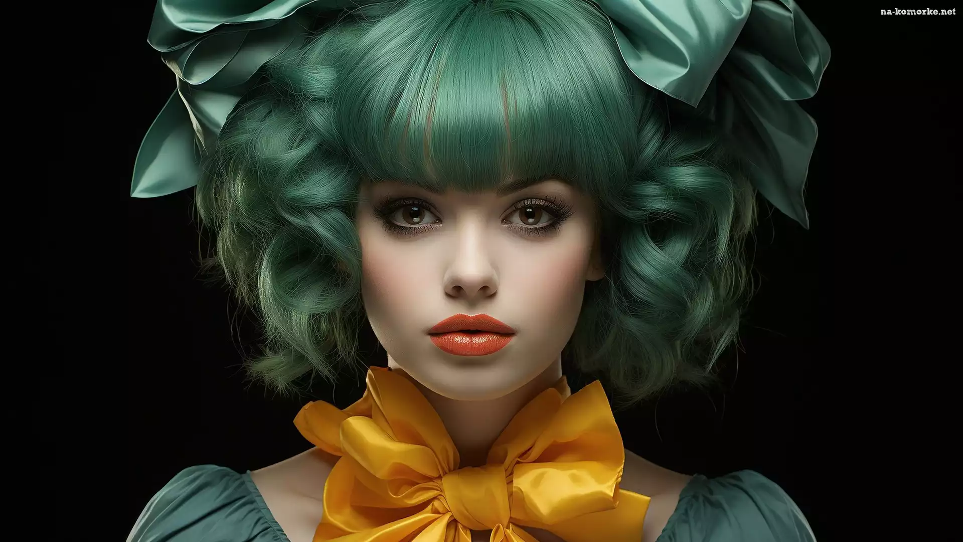 Żółta, Kobieta, Włosy, Kokarda, Zielone, Makijaż na Komórkę