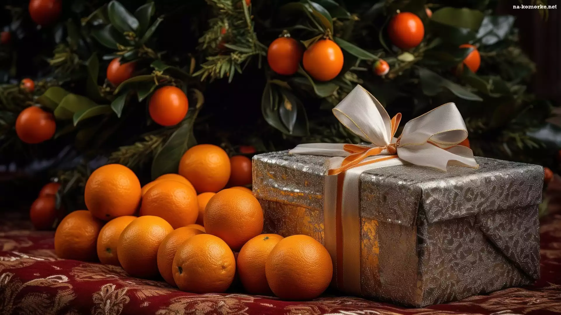 Pomarańcze, Kokarda, Prezent, Pudełko, Listki na Komórkę
