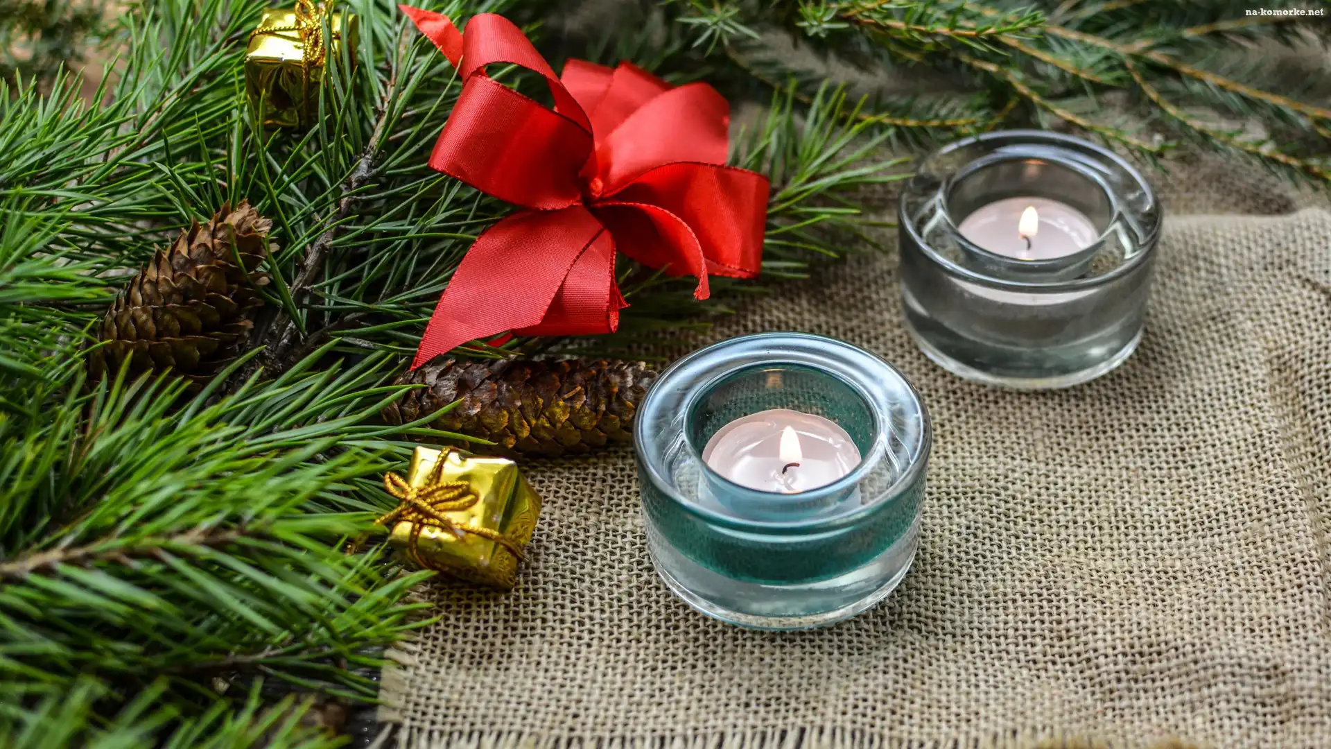 Dekoracja, Kokarda, Szyszki, Boże Narodzenie, Świeczki, Gałązki, Świerka na Komórkę