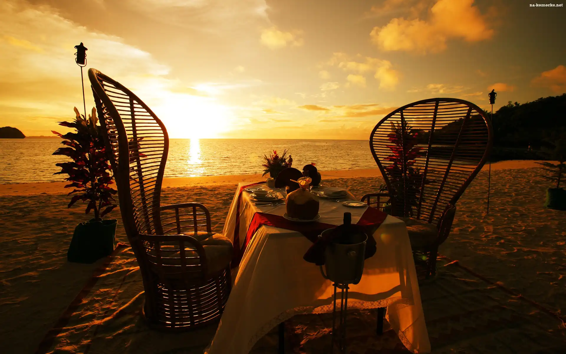 Kolacja, Zachód, Słońca, Plaża, Romantyczna na Komórkę
