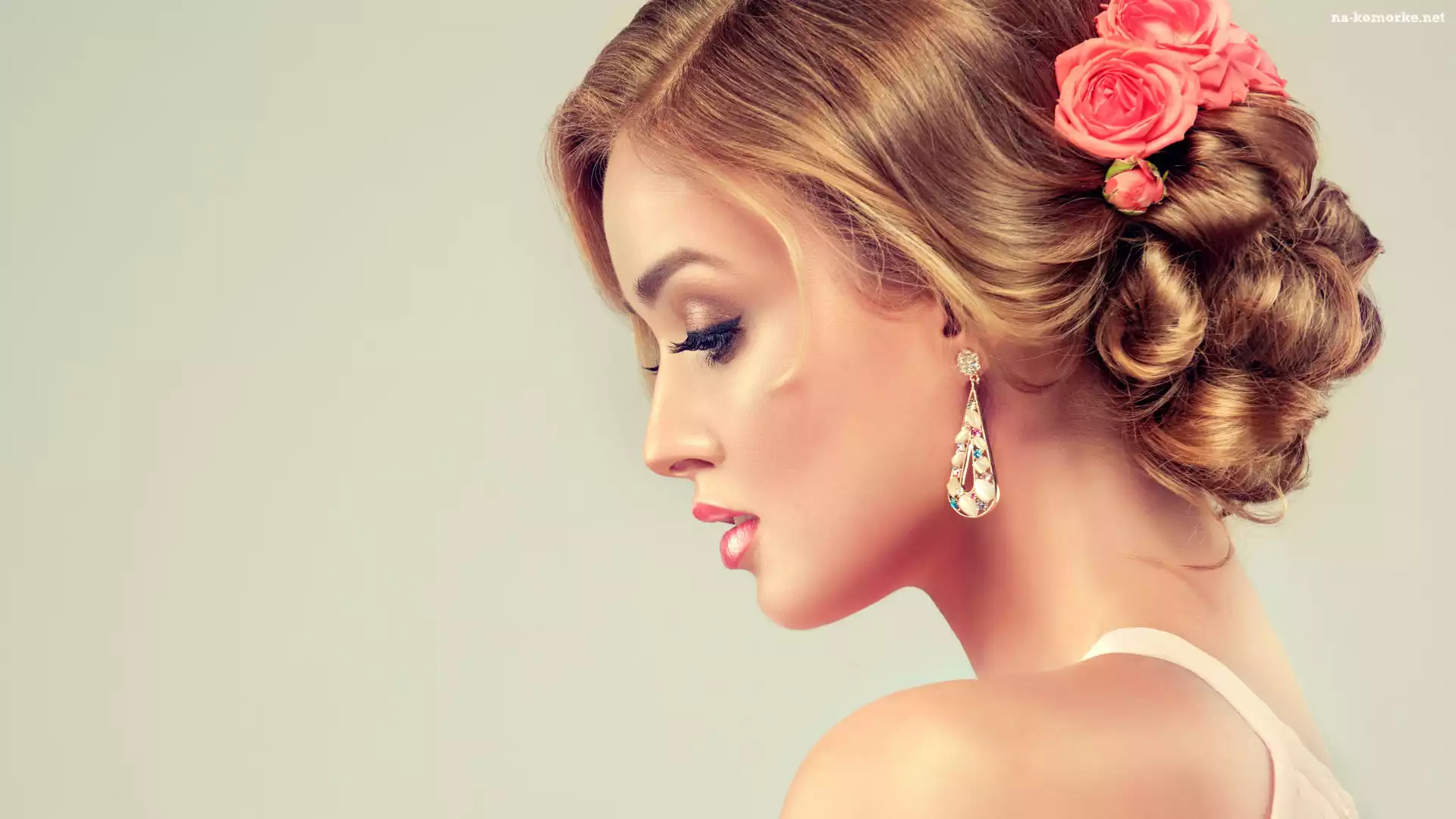 Róże, Profil, Blondynka, Kolczyk, Upięte, Włosy, Kobieta na Komórkę