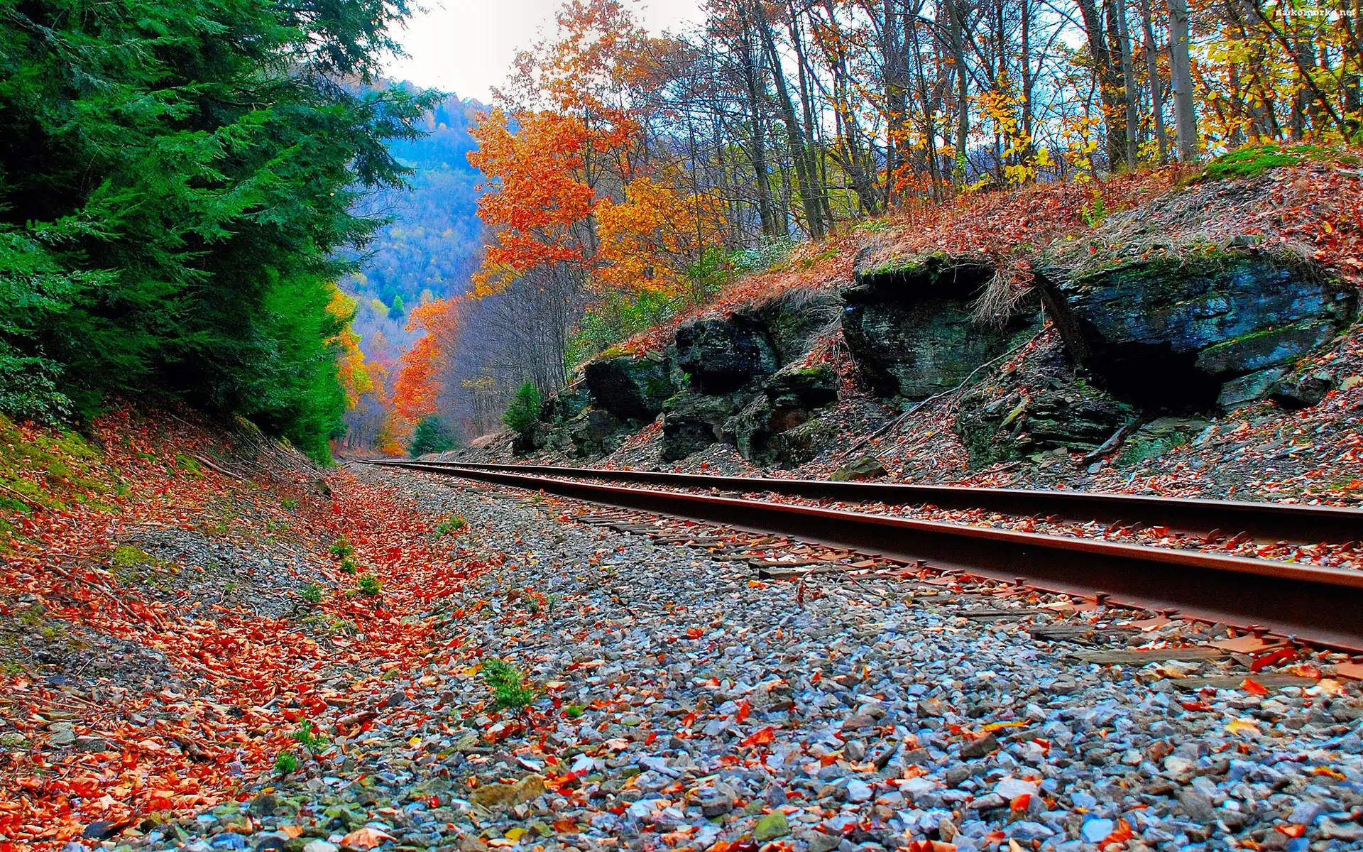 Kolejowe, Kolorowe, Barwy, Jesieni, Tory na Komórkę