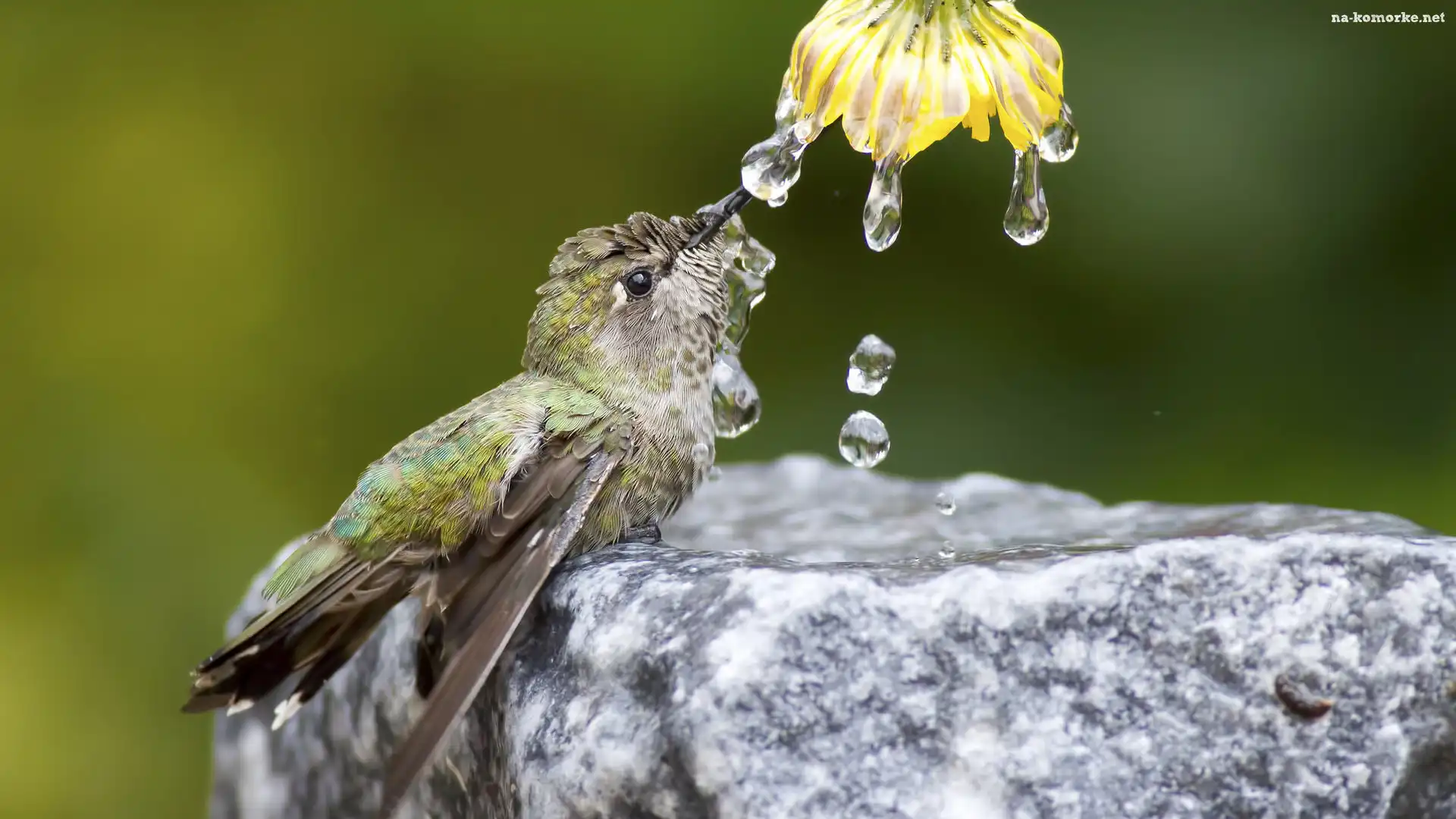 Koliber, Krople, Kwiat, Woda na Komórkę