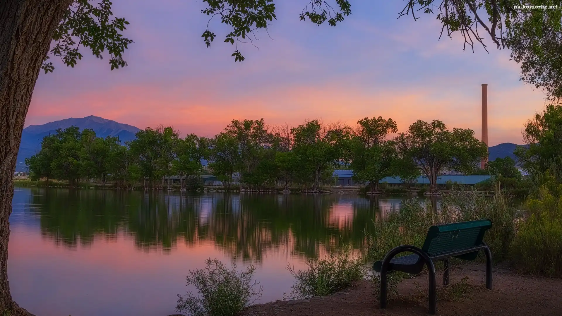 Drzewa, Salida, Góra, Mount Princeton, Rośliny, Stan Kolorado, Stany Zjednoczone, Jezioro, Ławka, Wschód słońca, Brzeg na Komórkę |