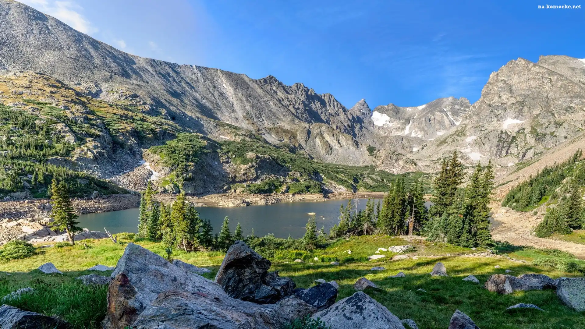 Stany Zjednoczone, Kamienie, Świerki, Stan Kolorado, Indian Peaks Wilderness, Góry, Jezioro Isabelle na Komórkę |