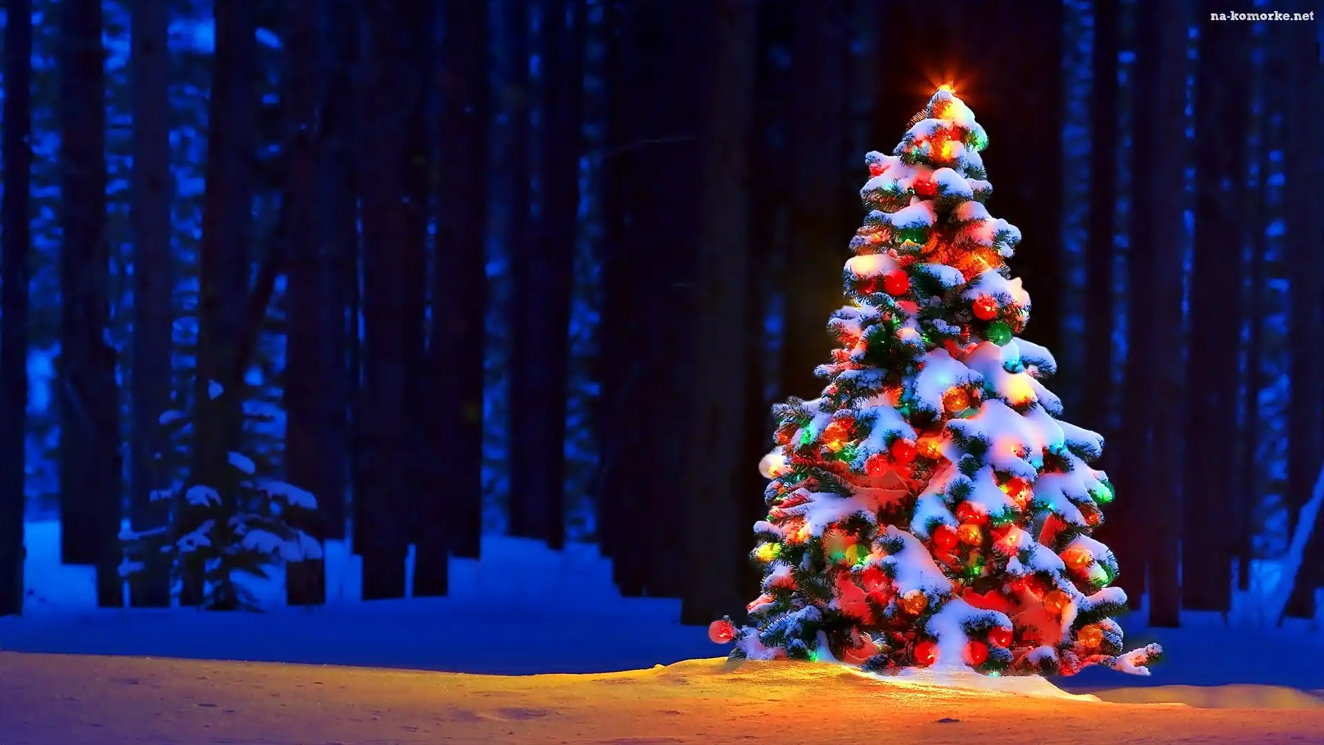 Kolorowa, Noc, Choinka, Las na Komórkę