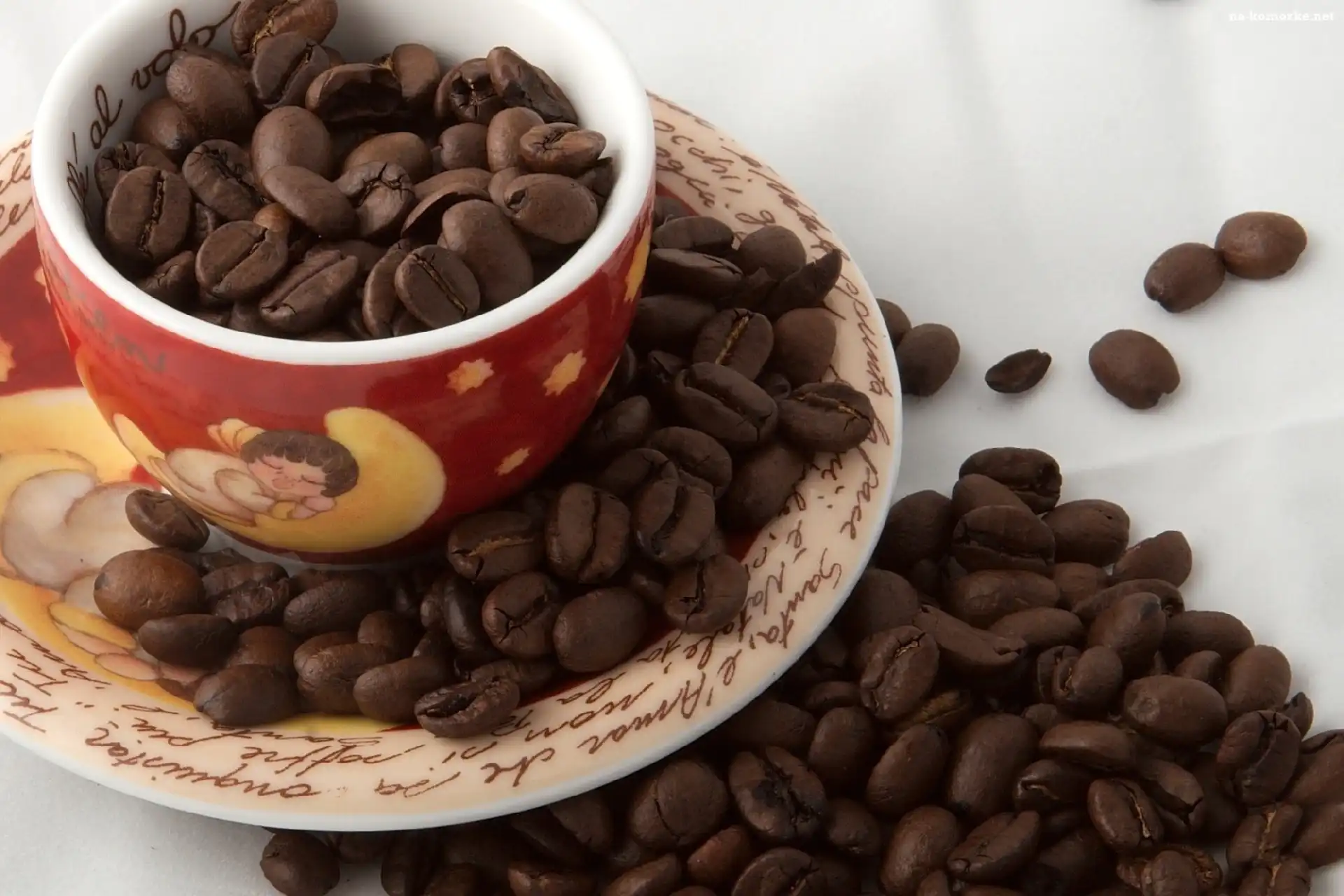 Kolorowa, Kawy, Filiżanka, Ziarna na Komórkę