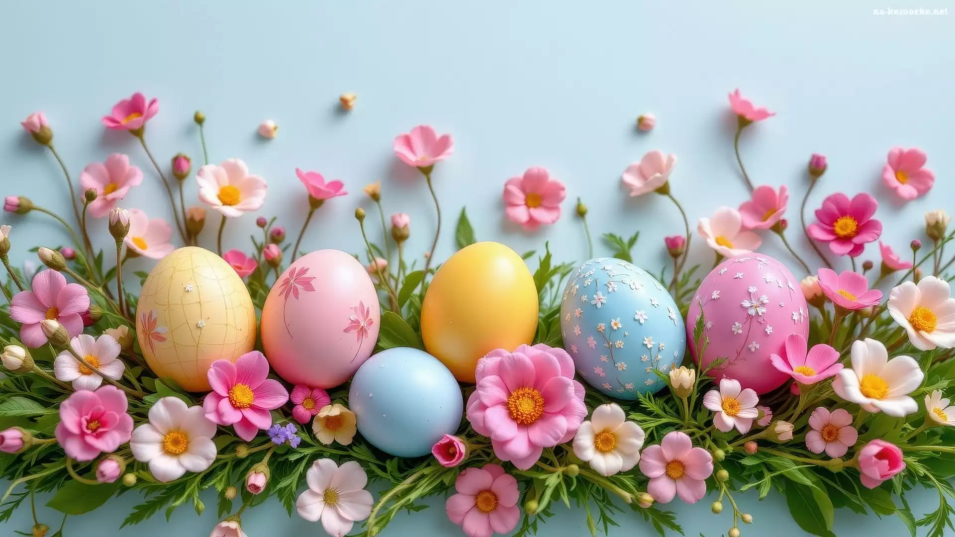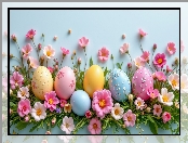 Pisanki, Zielone, Białe, Wielkanoc, Kwiaty, Gałązki, Różowe, Kolorowe na Komórkę