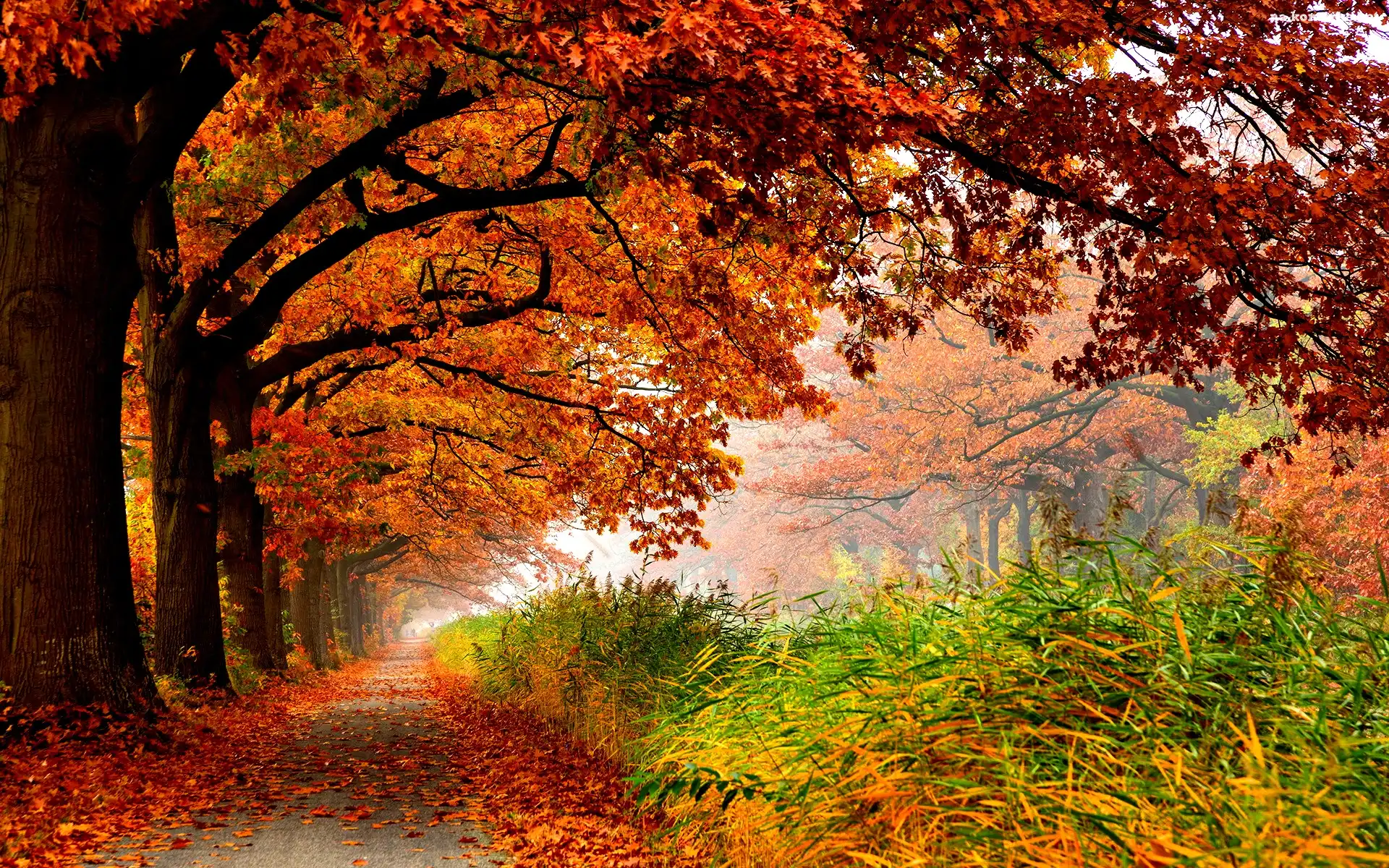 Kolorowe, Alejka, Drzewa, Liście na Komórkę