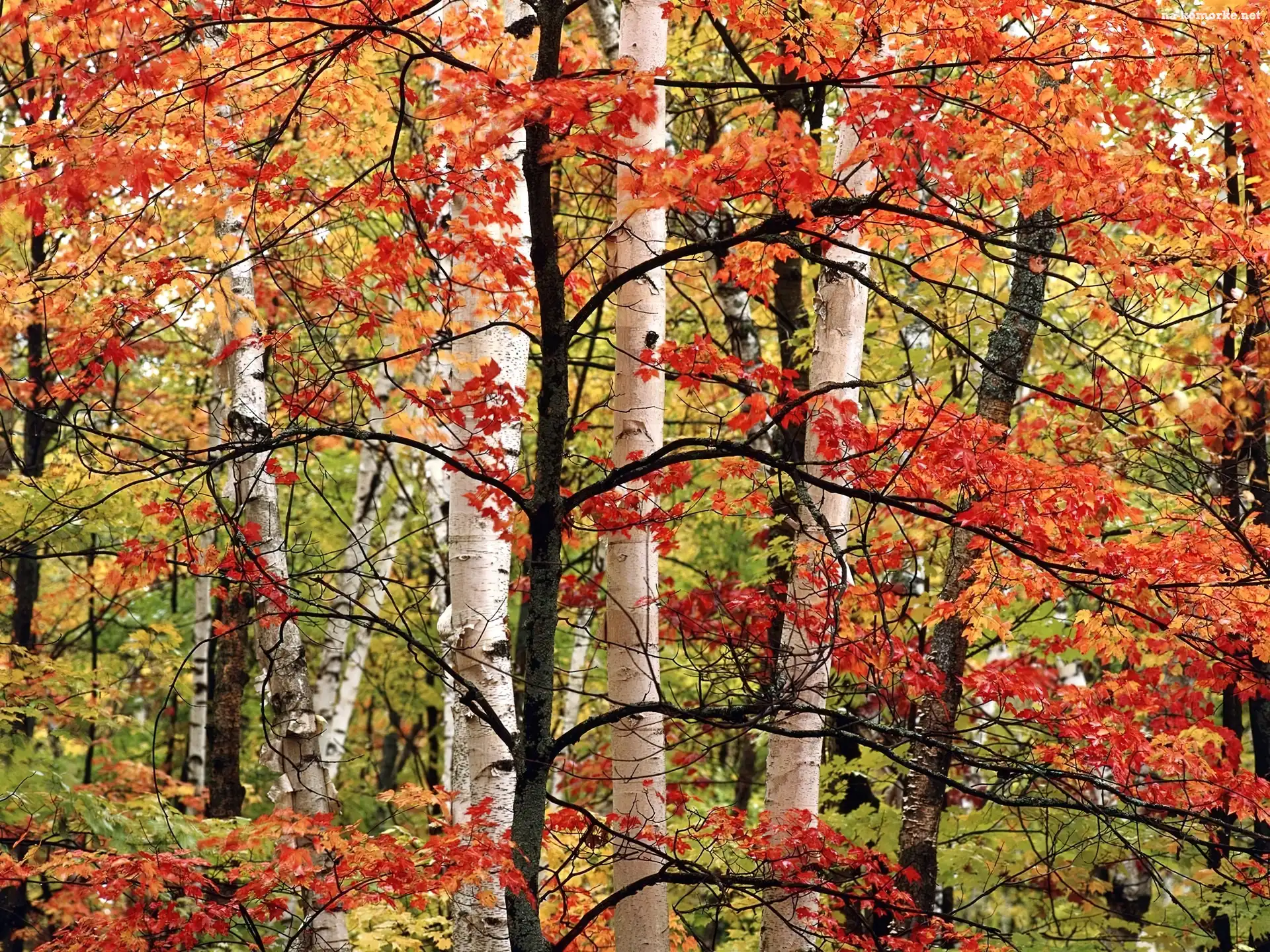 Kolorowe, Las, Jesień, Drzewa, Liście na Komórkę