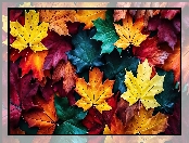 Pomarańczowe, Liście, Klon, Grafika AI, Zielone, Żółte, Kolorowe na Komórkę