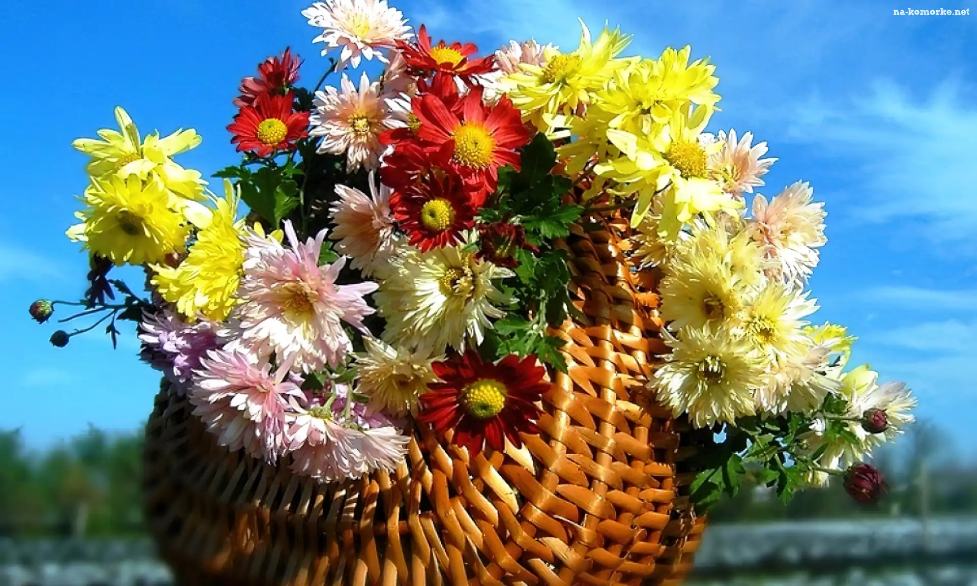 Kosz, Kolorowe, Chryzantemy na Komórkę