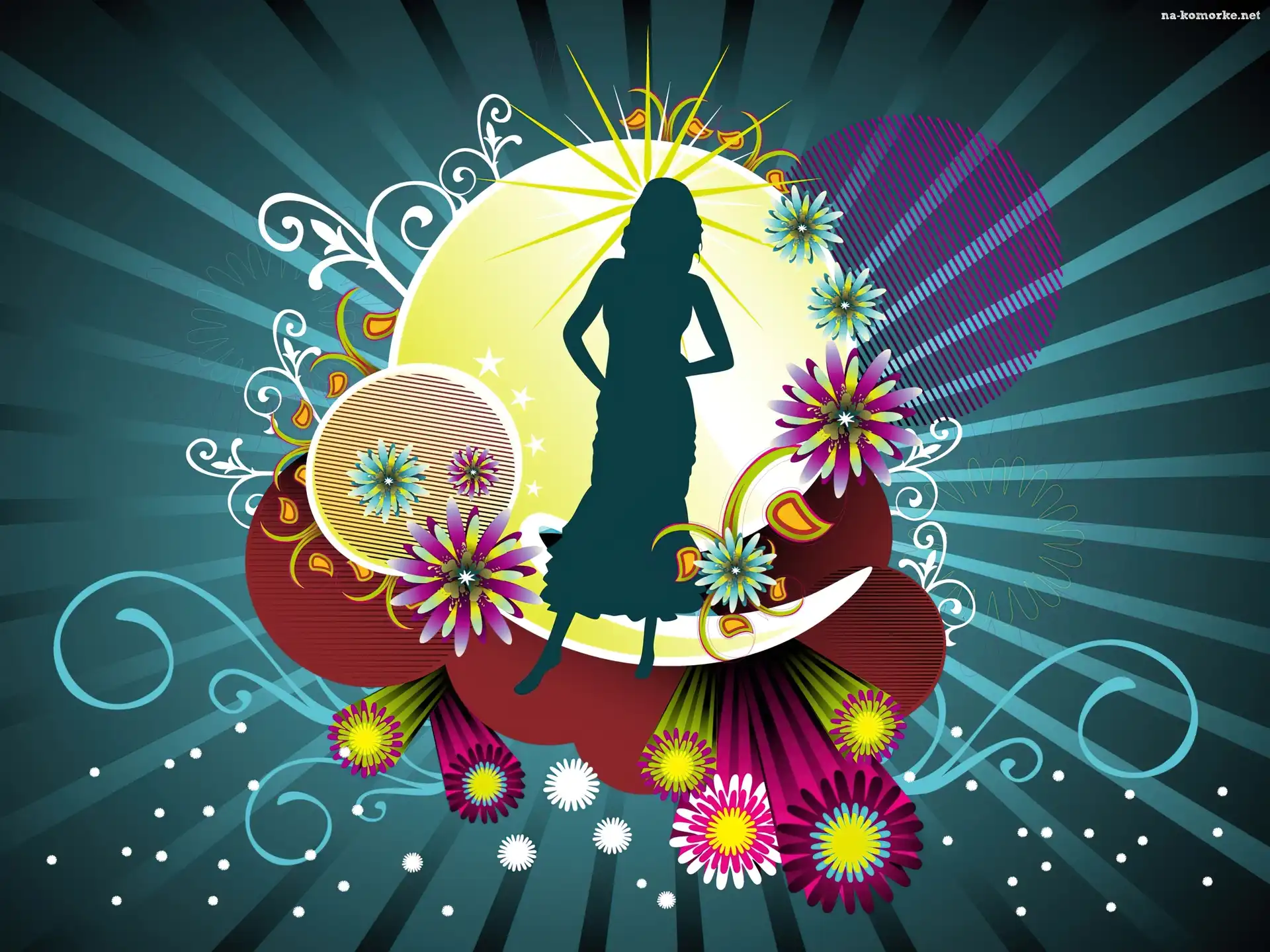 Kolorowe, Żółta, Kobieta, Wzorki, Kula, Kwiatki na Komórkę
