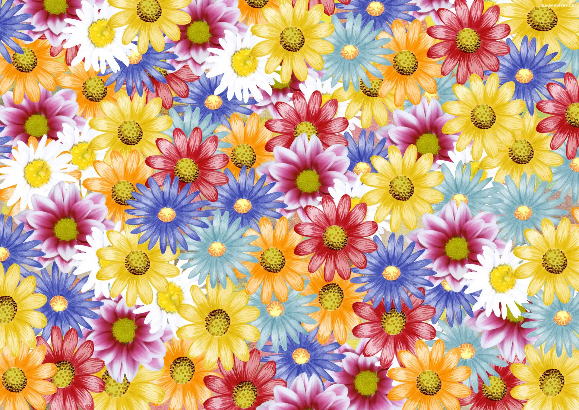 Kolorowe, Grafika 2D, Kwiaty, Stokrotki na Komórkę