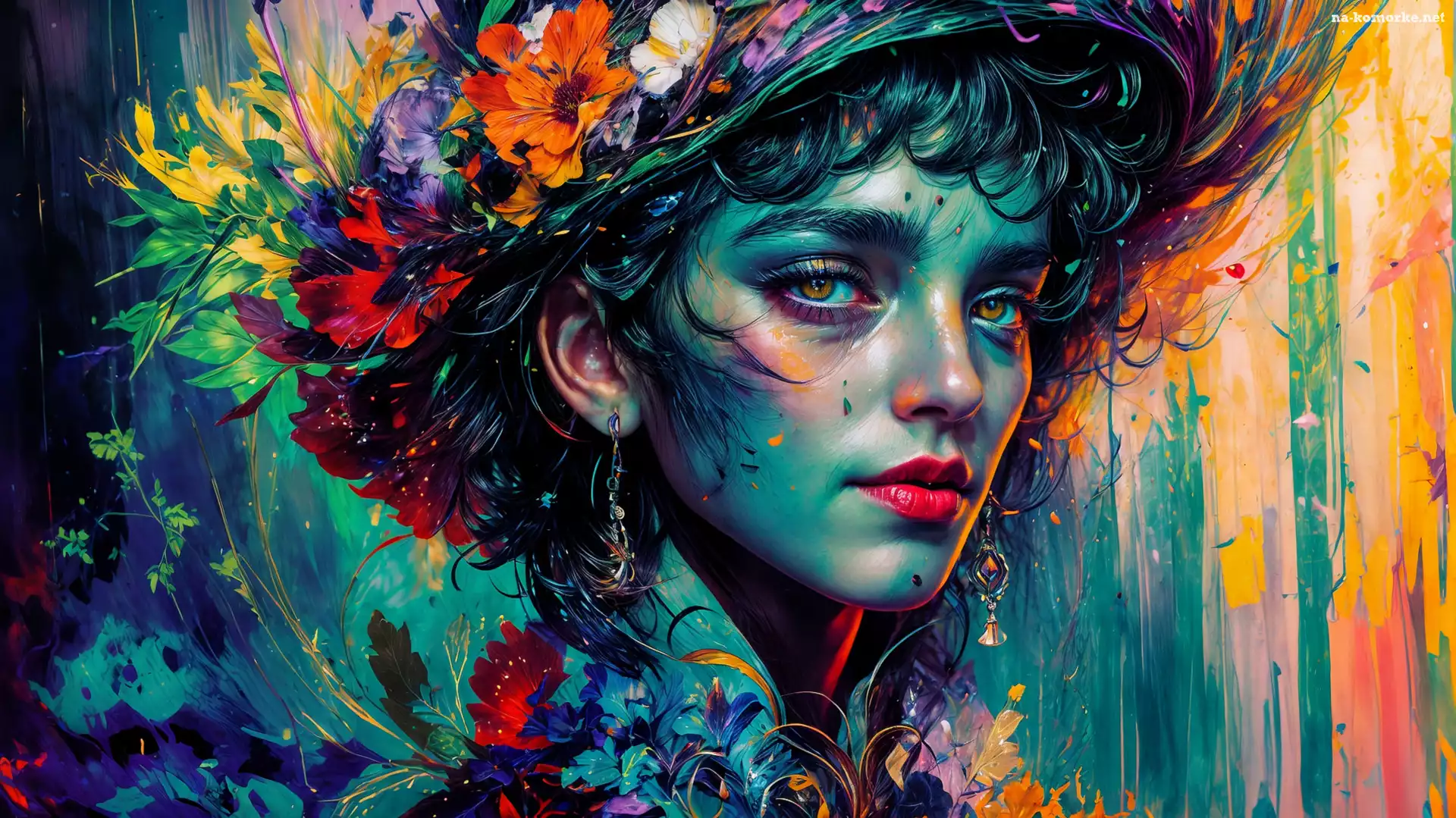 Kobieta, Kolorowe, Kwiaty, Kapelusz, Grafika na Komórkę