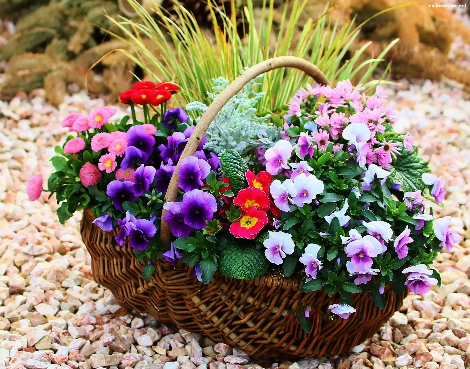 Kolorowe, Kamyki, Kwiaty, Koszyk na Komórkę