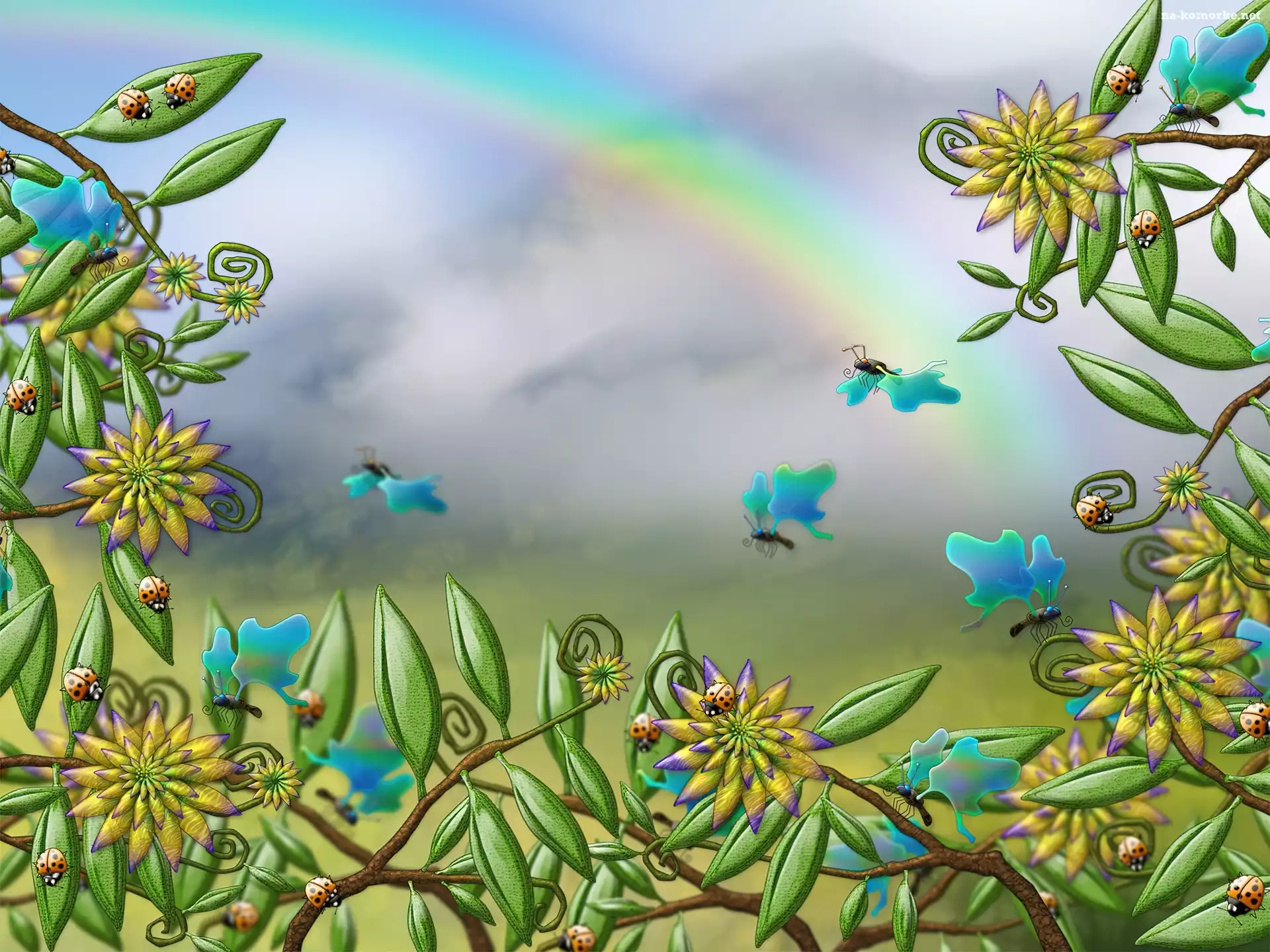 Kolorowe, Motyle, Kwiaty, Gałęzie na Komórkę