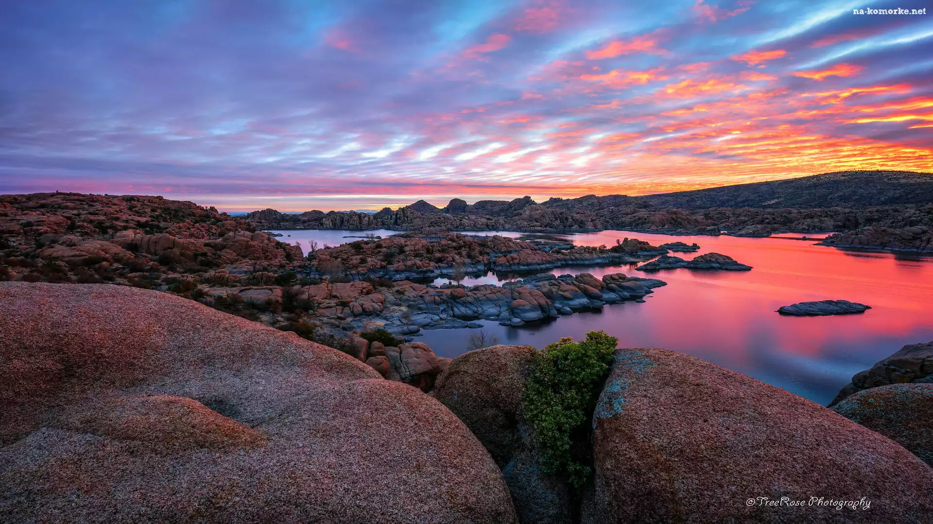 Prescott, Watson Lake, Stany Zjednoczone, Jezioro, Wschód słońca, Niebo, Kolorowe, Skały, Arizona na Komórkę |
