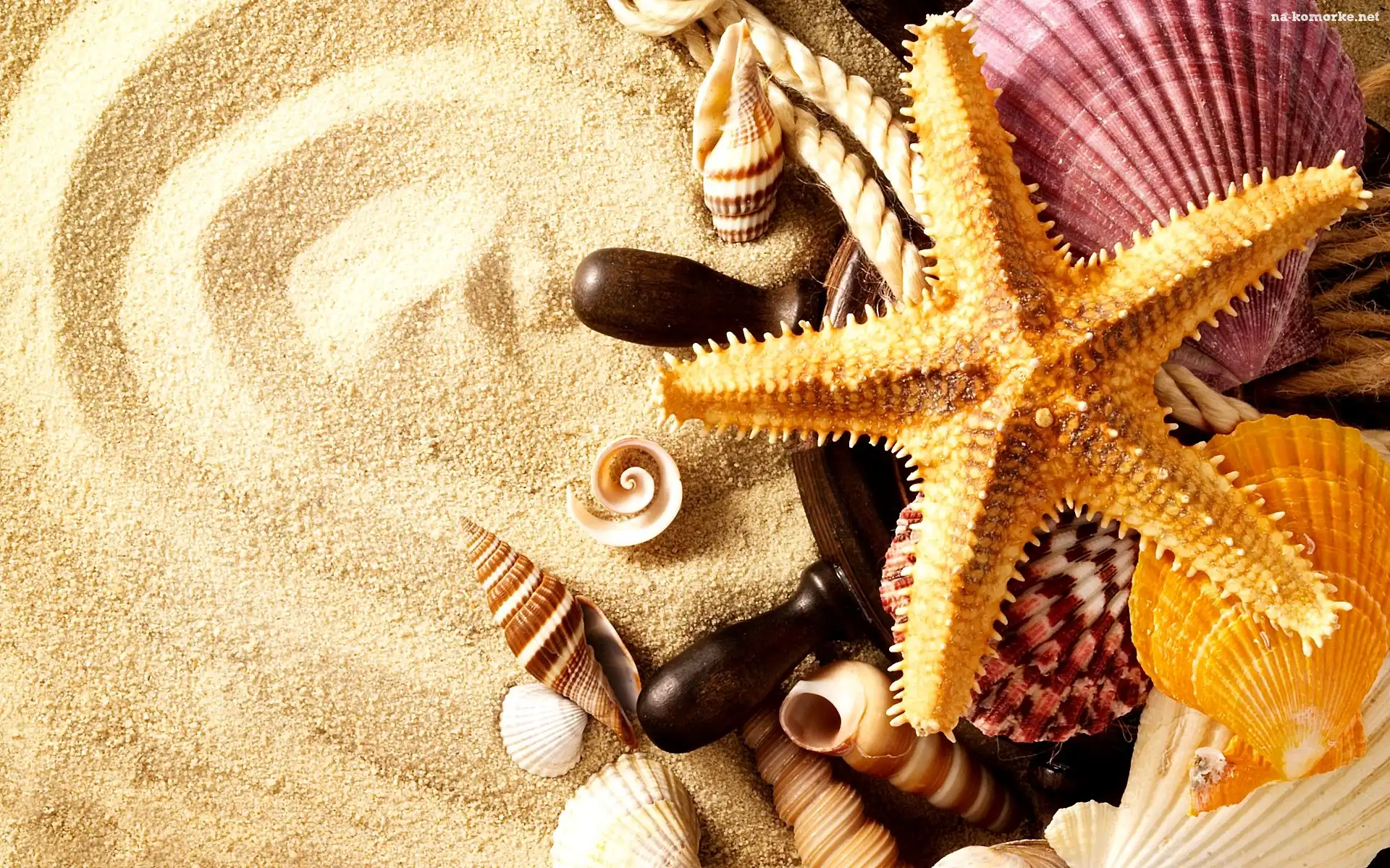 Kolorowe, Piasek, Muszelki, Rozgwiazda na Komórkę