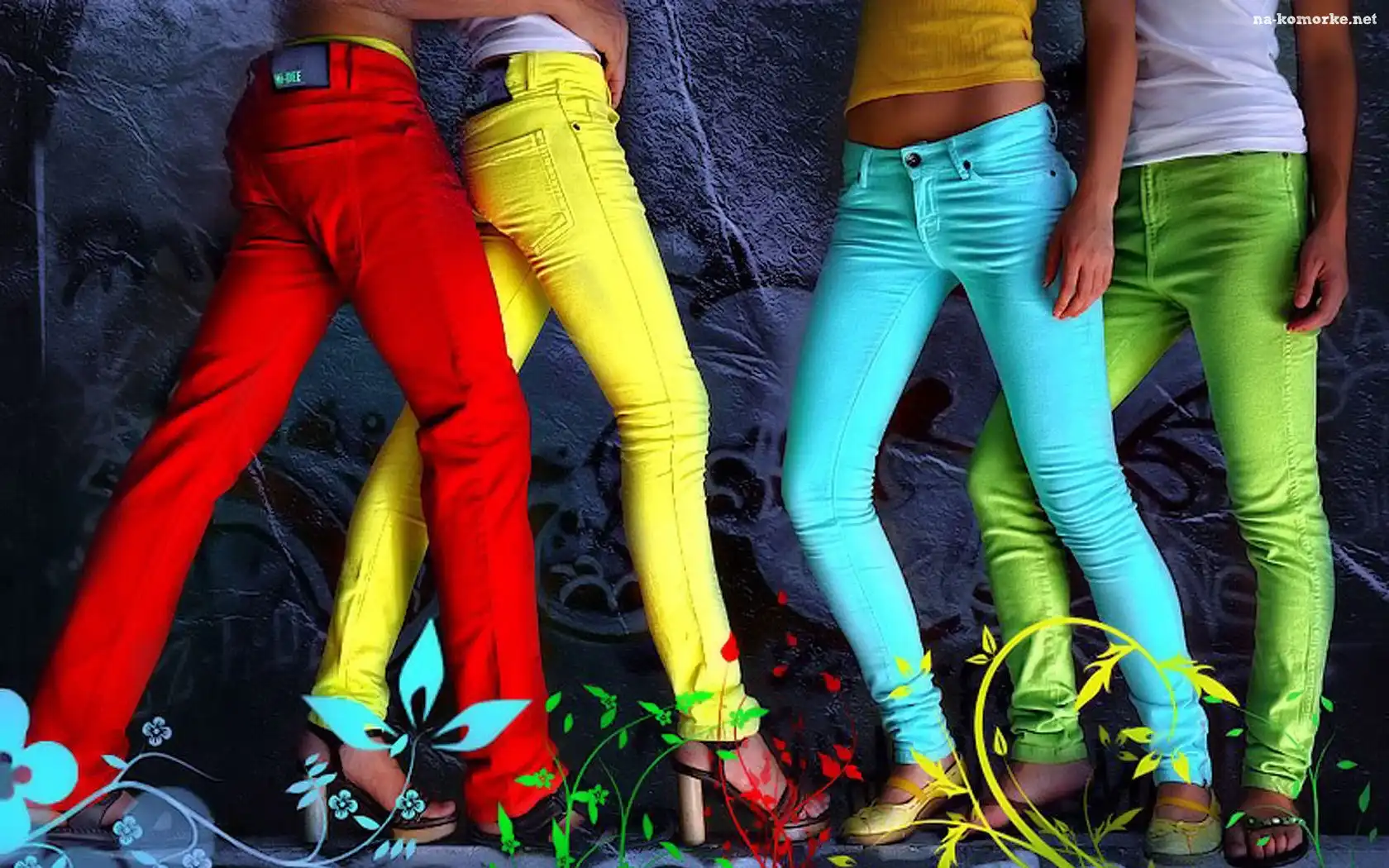 Nogi, Kolorowe, Spodnie na Komórkę