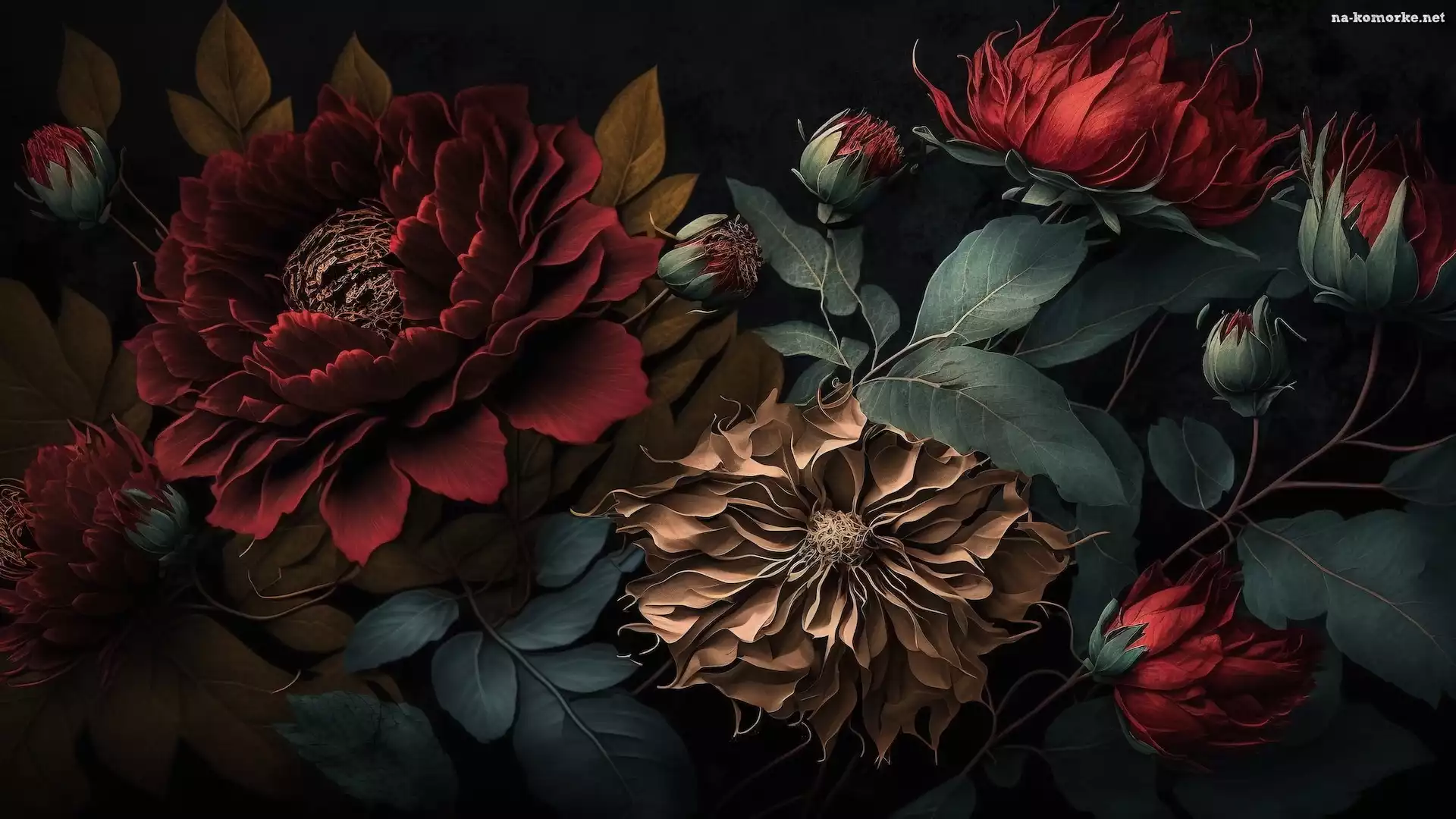 Grafika, Kolorowe, Pąki, Kwiaty, Liście na Komórkę