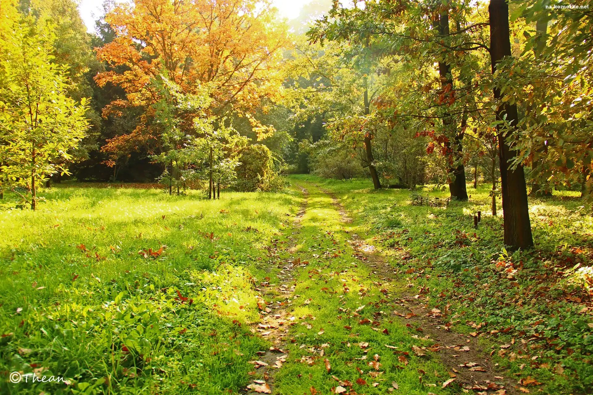 Park, Kolorowe, Liście, Dróżka, Drzewa, Trawa, Jesień na Komórkę