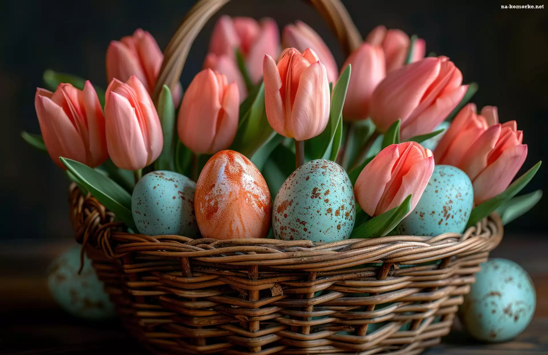 Wielkanoc, Kolorowe, Pisanki, Tulipany, Koszyk na Komórkę