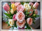 Bukiet, Kolorowe, Róże, Kwiaty, Tulipany na Komórkę